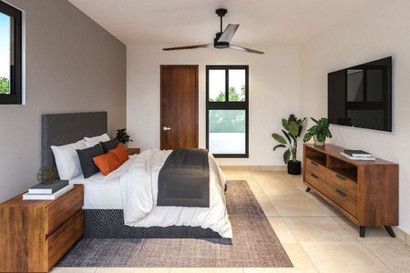 En planta alta; Recámara principal con clóset vestidor, baño completo y balcón.